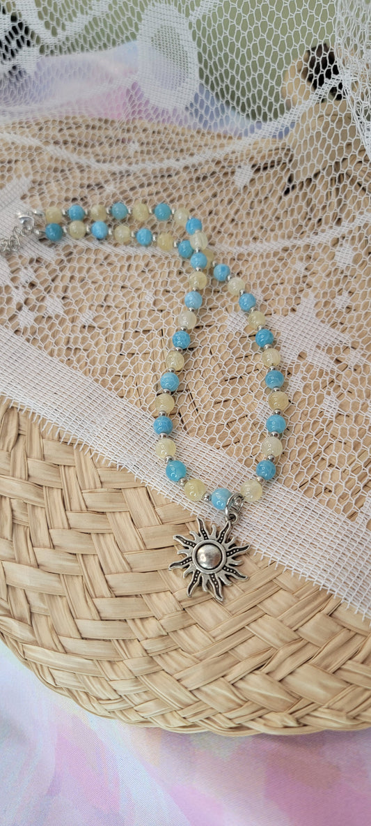 Beaded Blue Chalcedony & Gypsum with Sliver Sun Charm