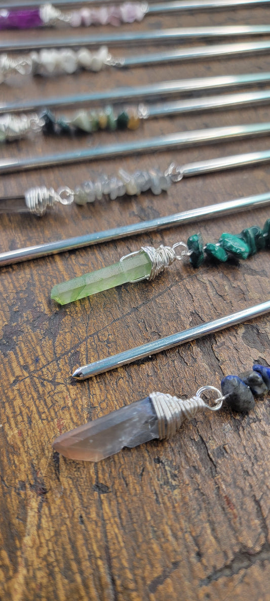 Wire Wrapped Crystal Hairsticks