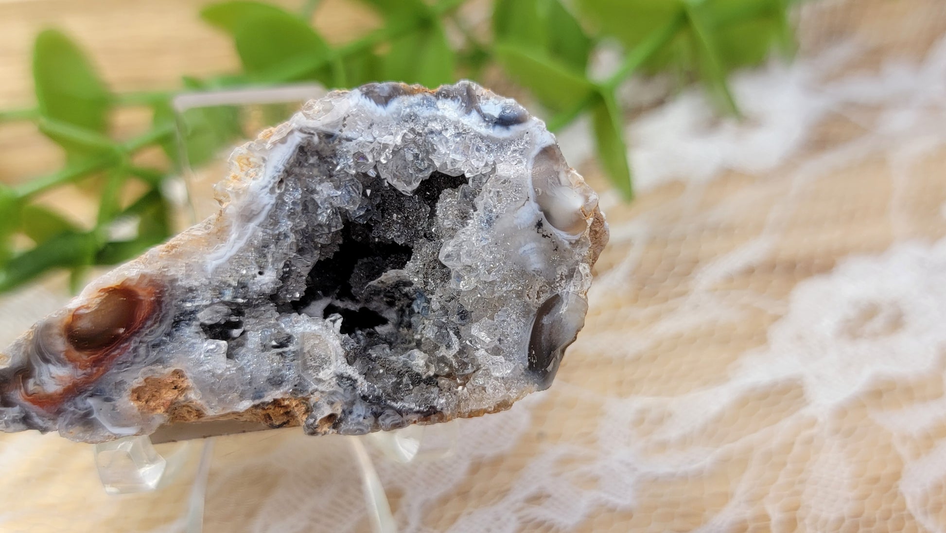 agate geodes are geological secondary structures which occur in certain sedimentary and volcanic rocks. They are themselves of sedimentary origin and naturally made by chemical precipitation. Geodes are hollow, vaguely spheroid to oblate masses of mineral matter. It may include crystals.