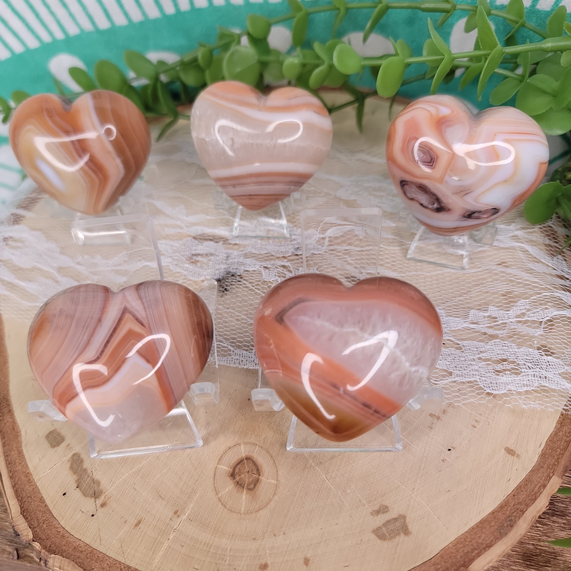 Banded Carnelian Hearts