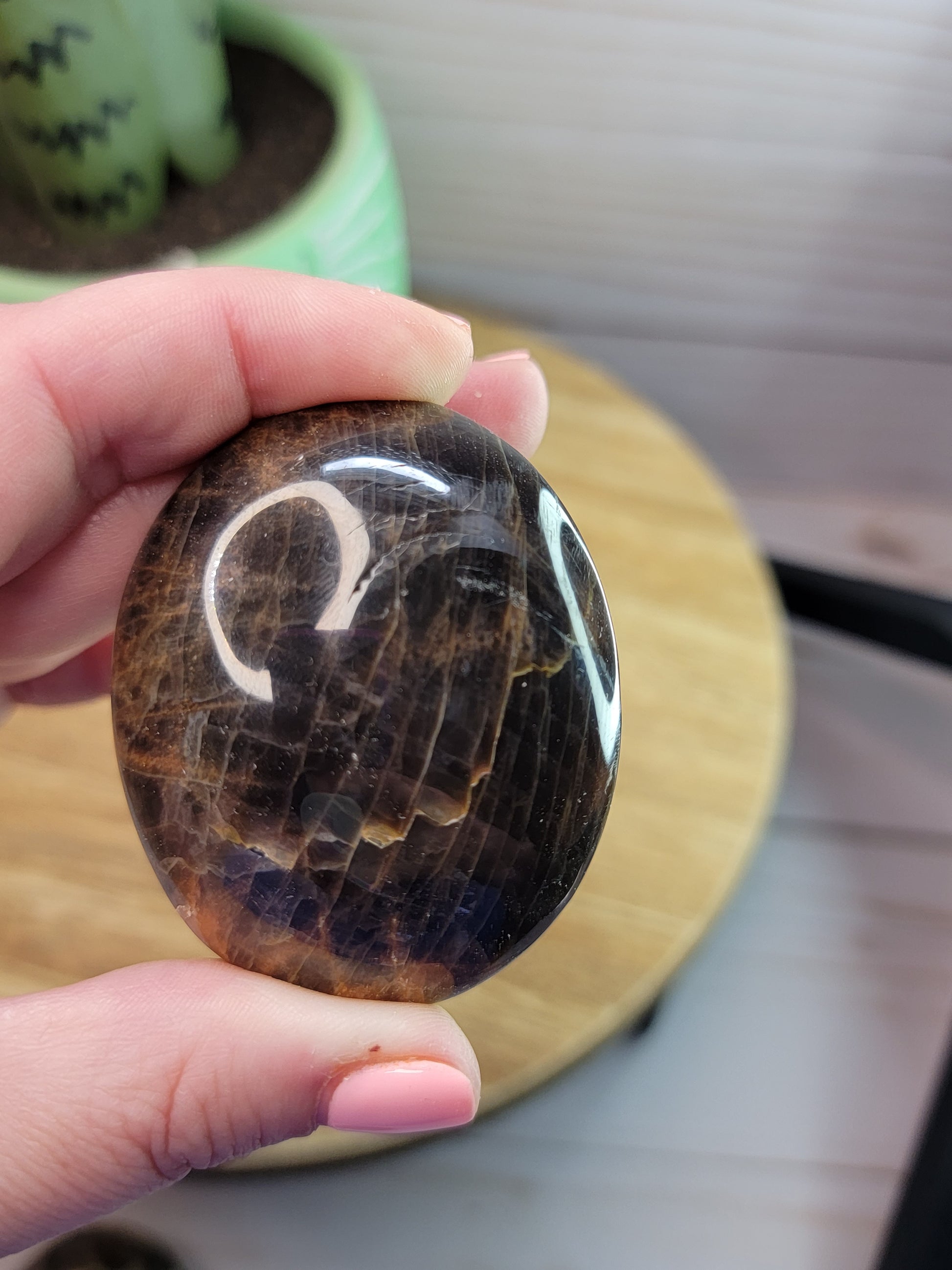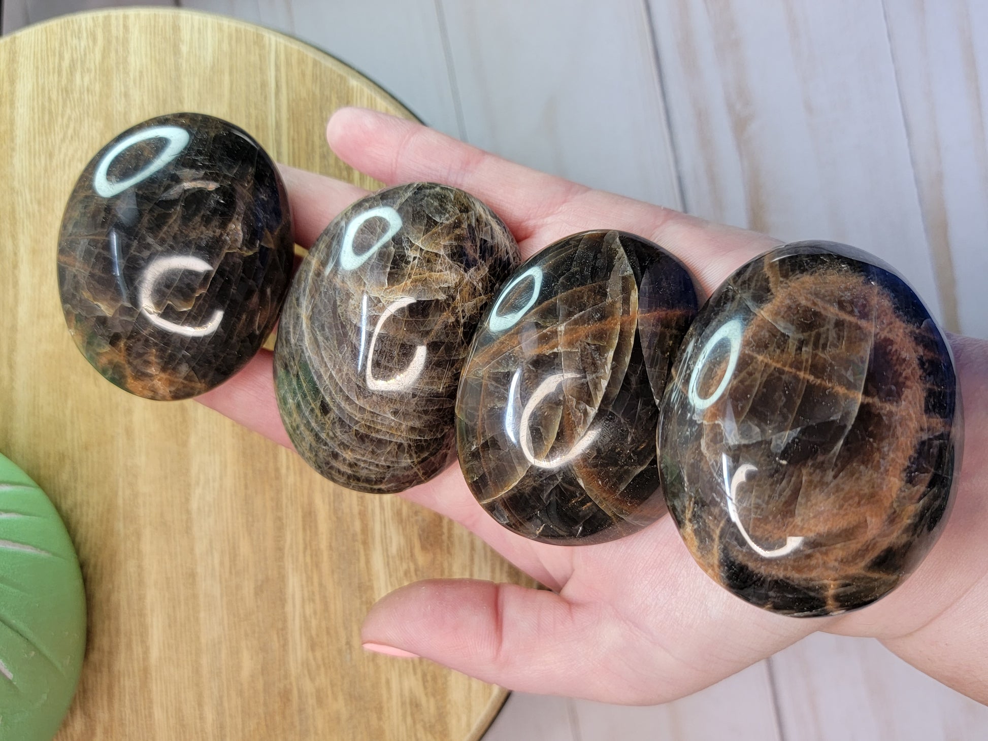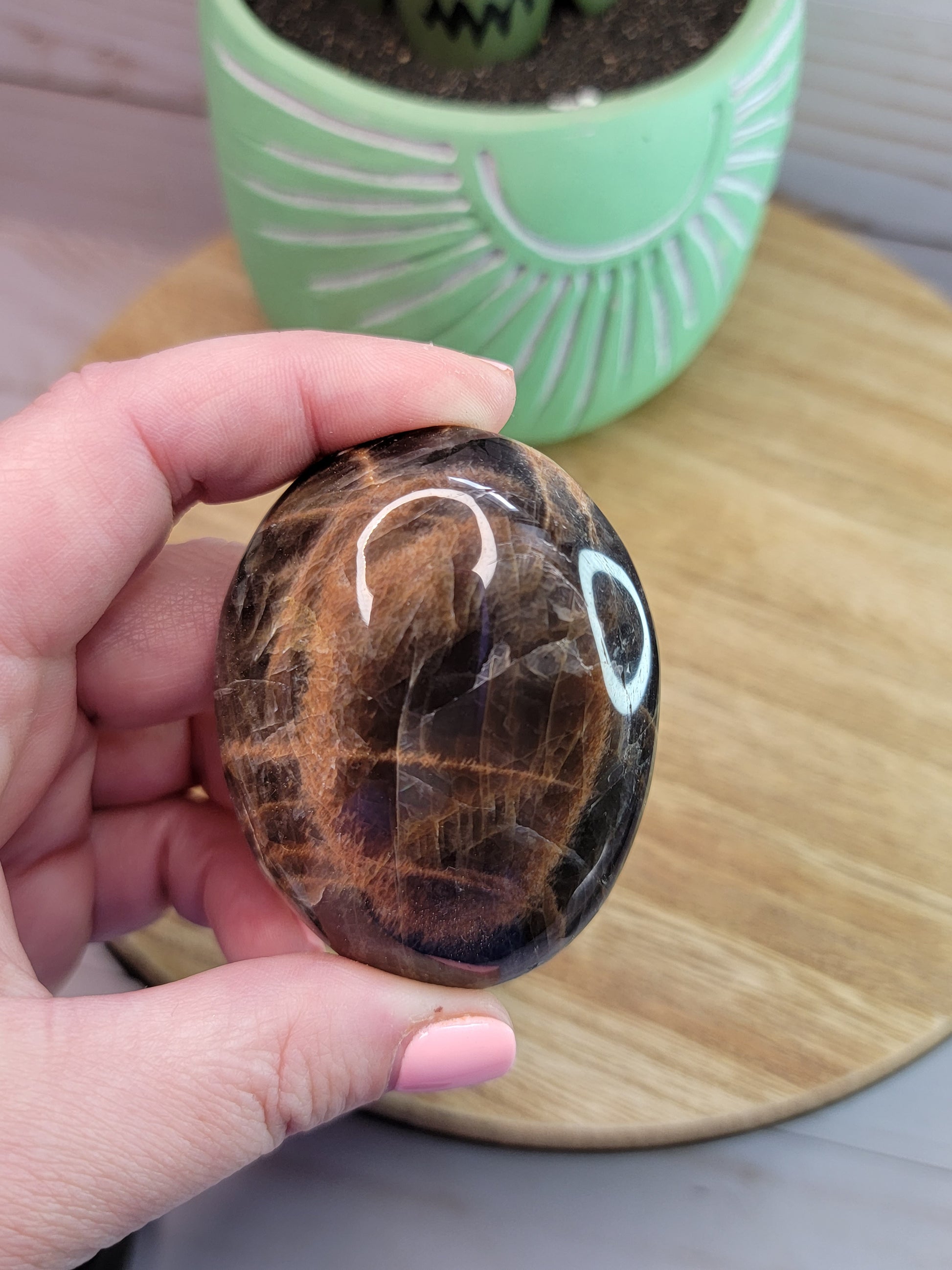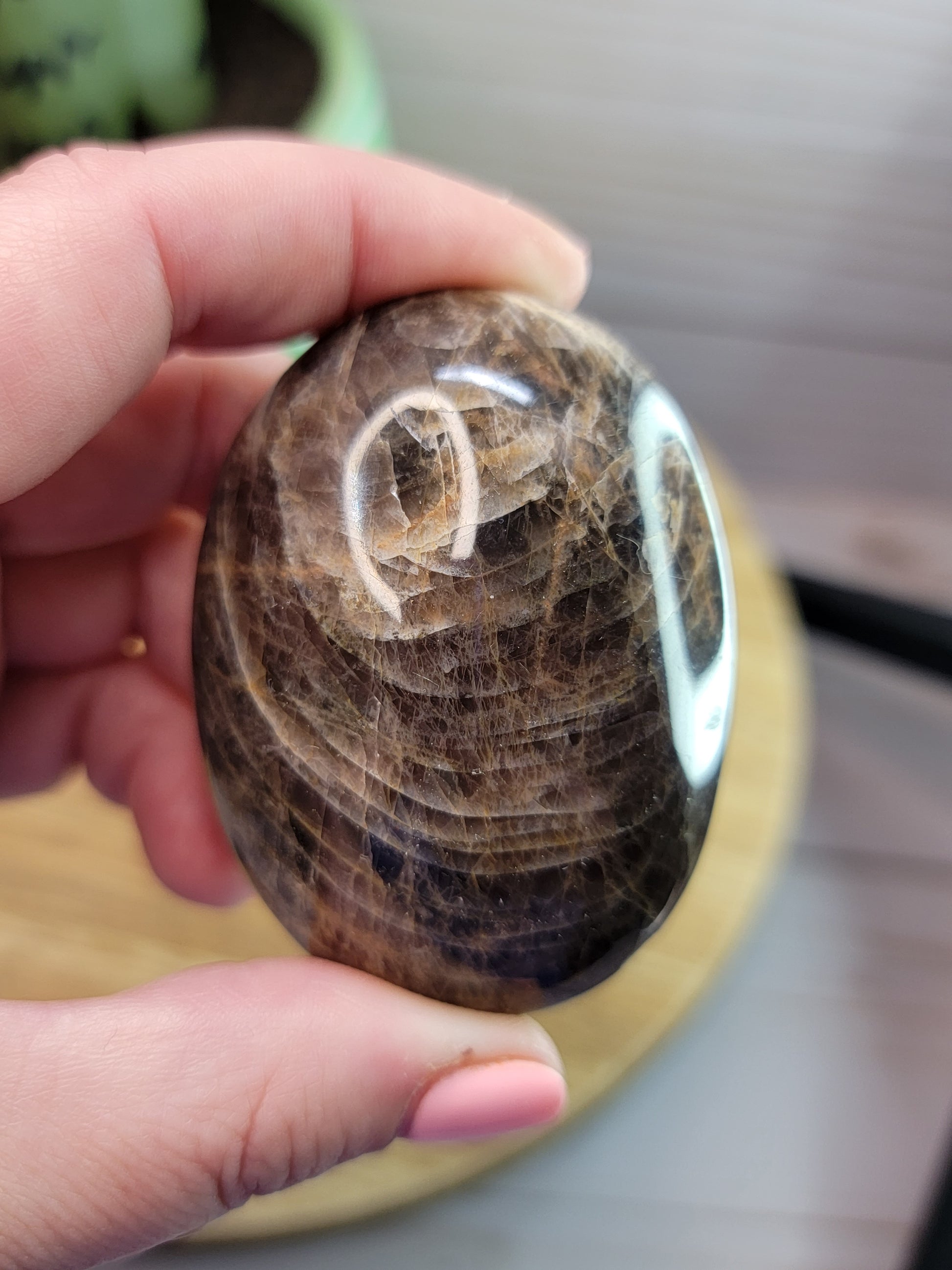 It encourages one to stay calm and grounded and not overreact in emotional and personal situations. Black Moonstone enables one to be aware of one's subconscious and allows one to consistently act from this intuition. It encourages one to maintain a youthful attitude and zest for life.