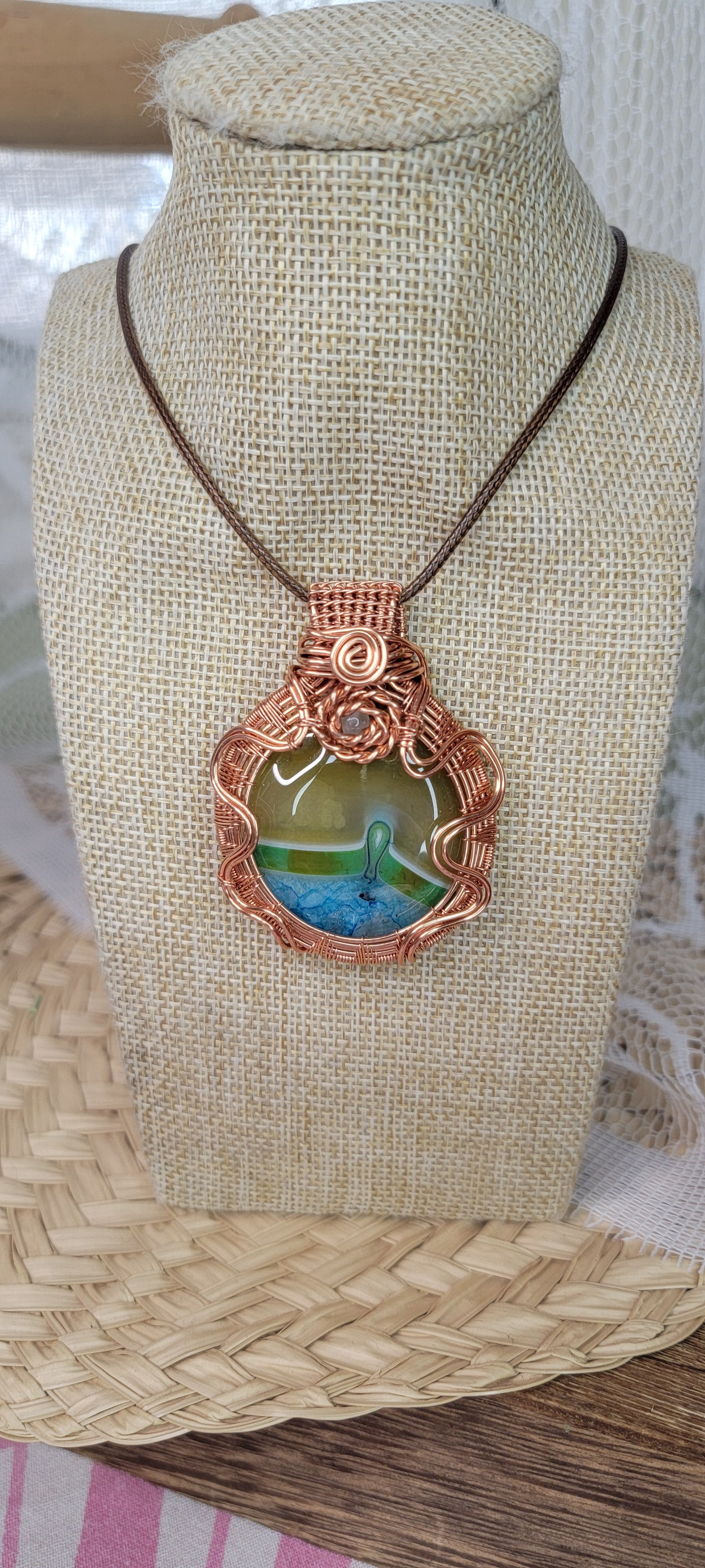 Copper Wrapped (Dyed) Banded Agate Pendant