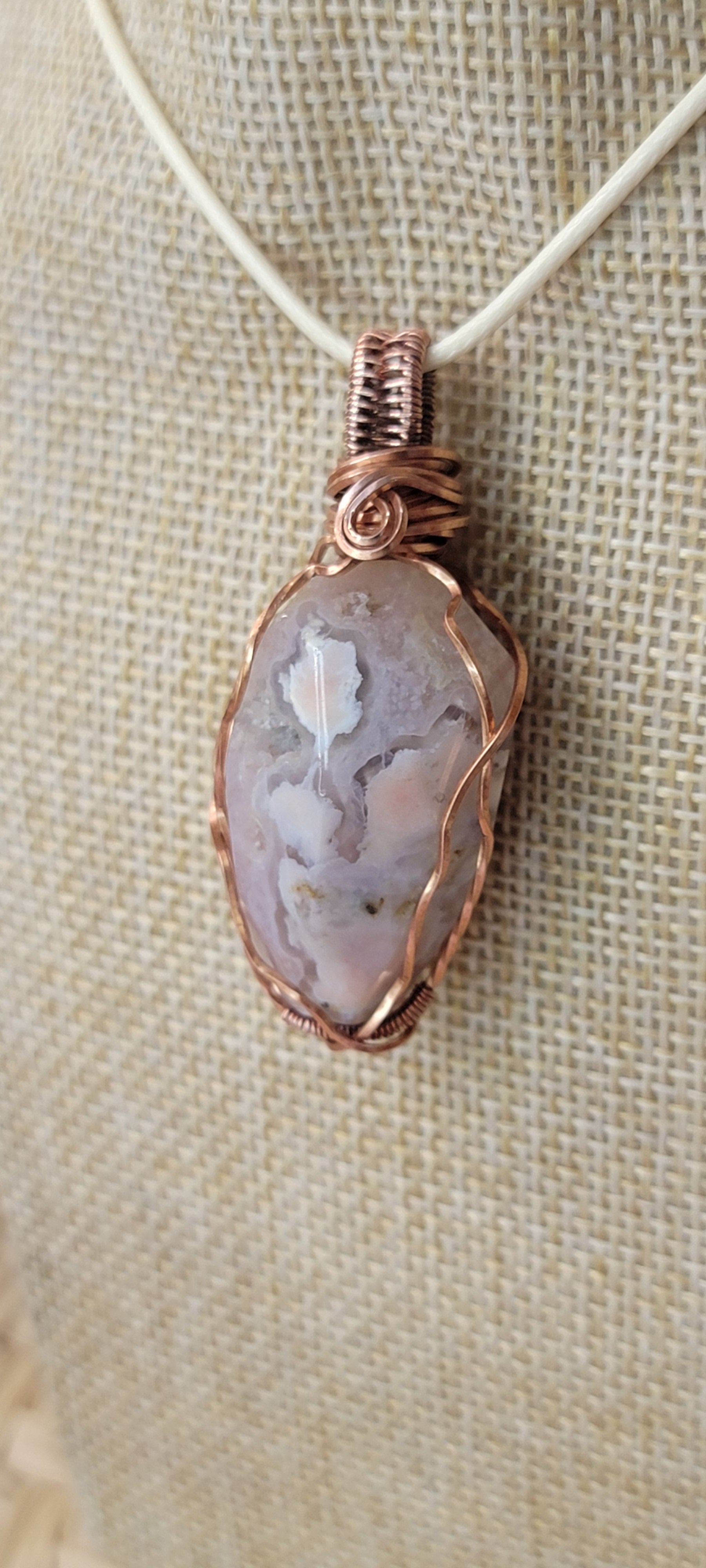Copper Wrapped Flower Agate Pendant