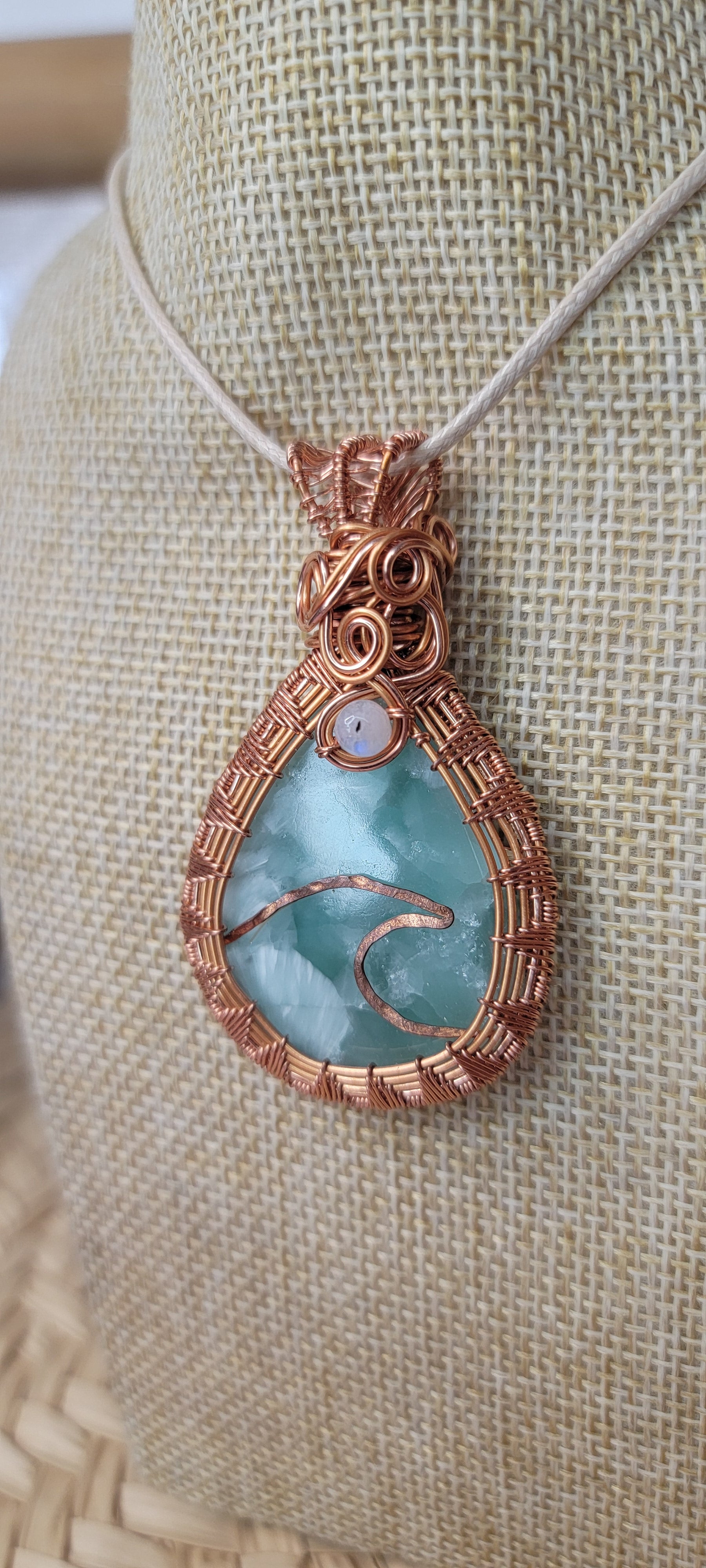 Copper Wrapped Hemimorphite & Moonstone Pendant