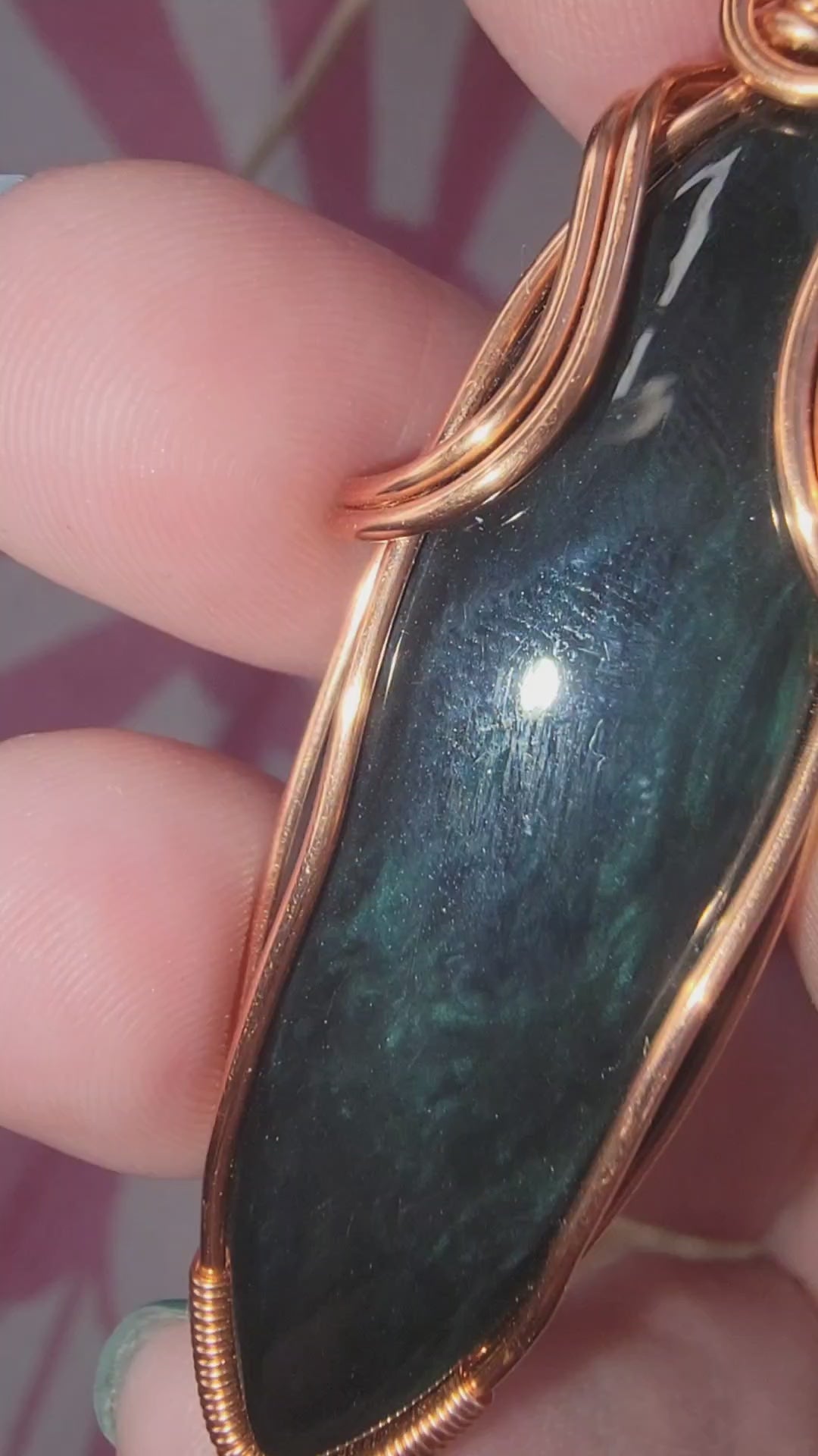 Copper Wrapped Velvet Obsidian & Peridot Pendant