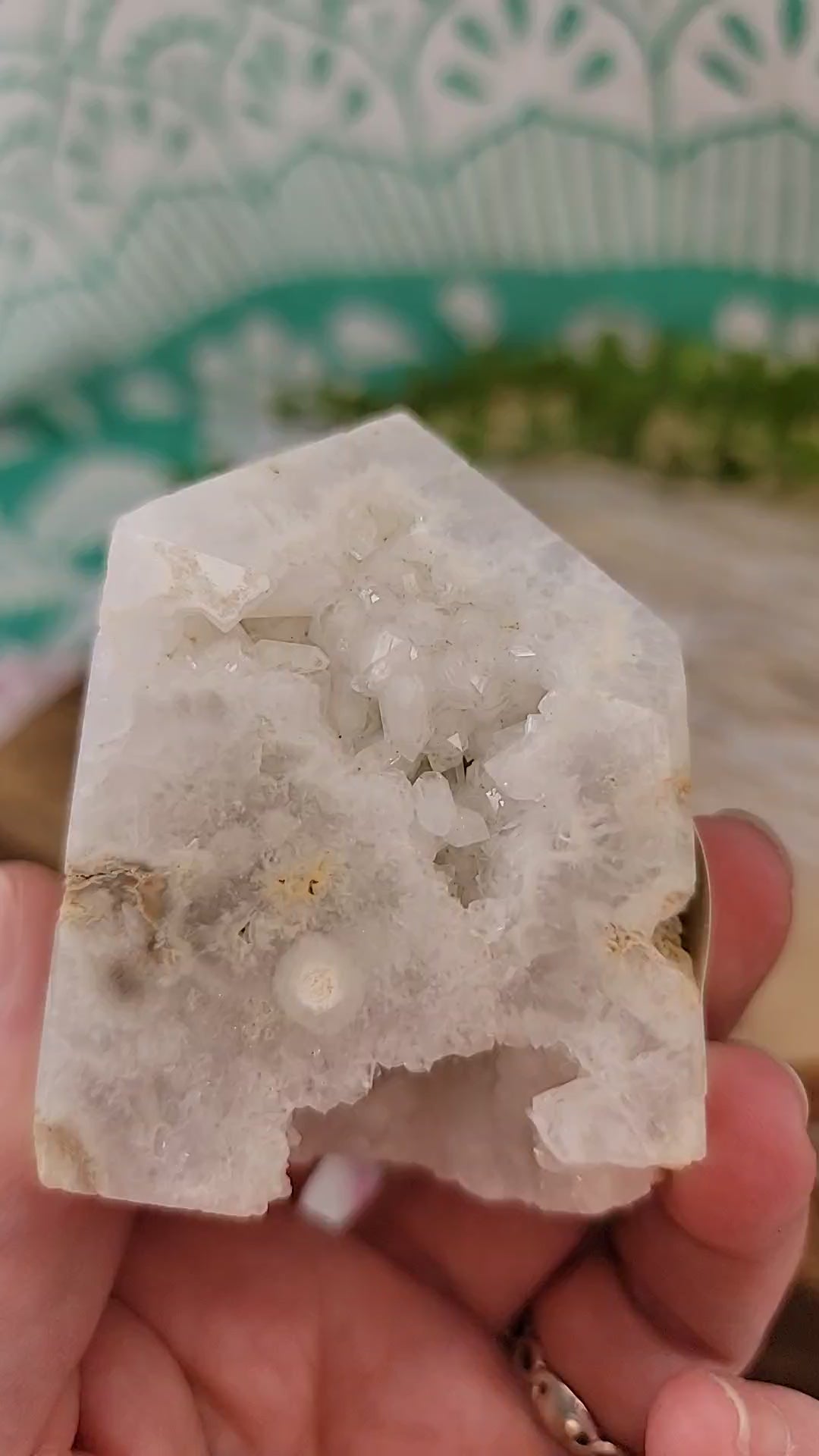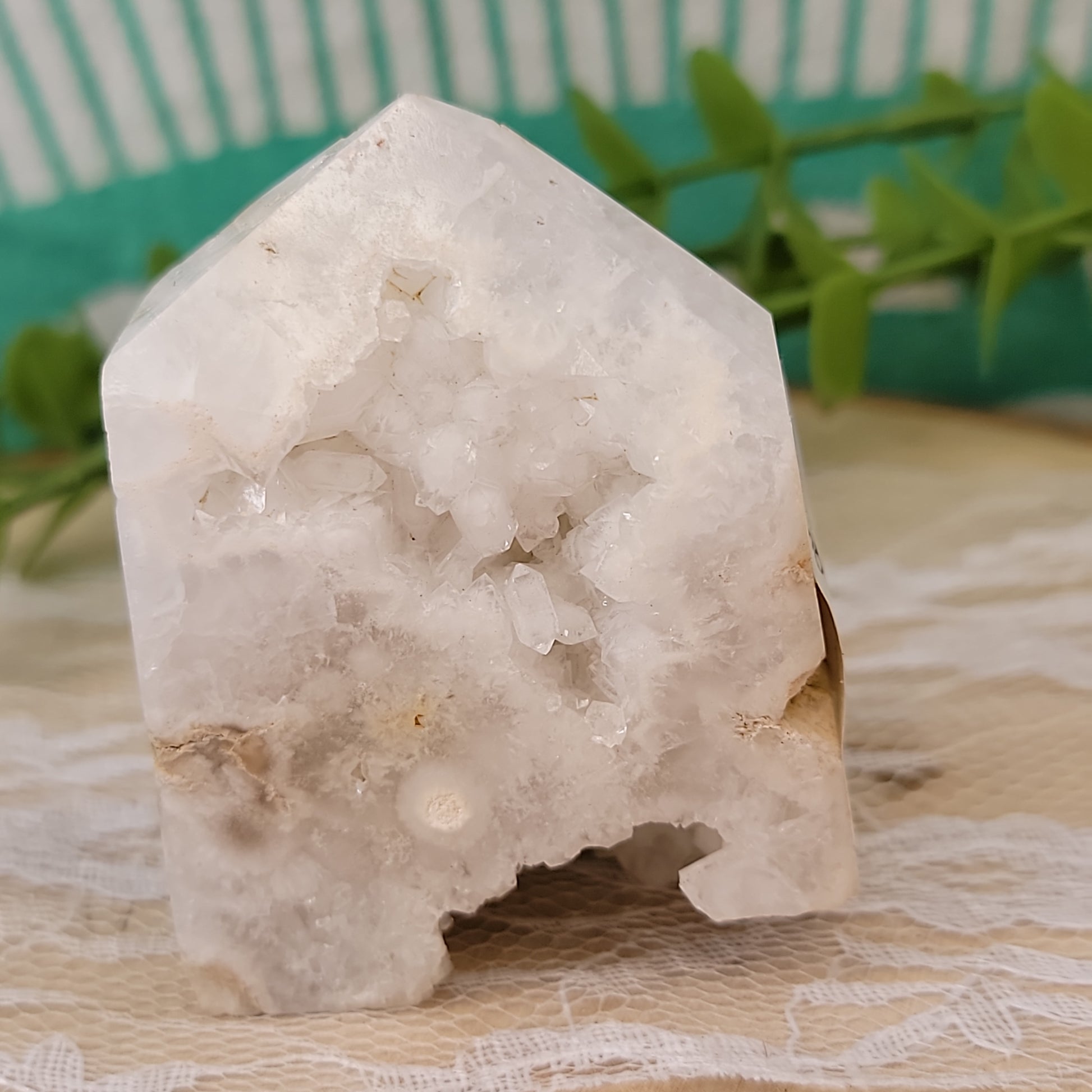 Indulge in the mystical beauty of Druzy Clear Quartz. Its luster, shine, and sparkling appearance will capture your attention. Experience the potential benefits of Clear Quartz as it brings clarity, amplifies energy, and boosts your spiritual growth. Elevate your energy with this enchanting crystal.