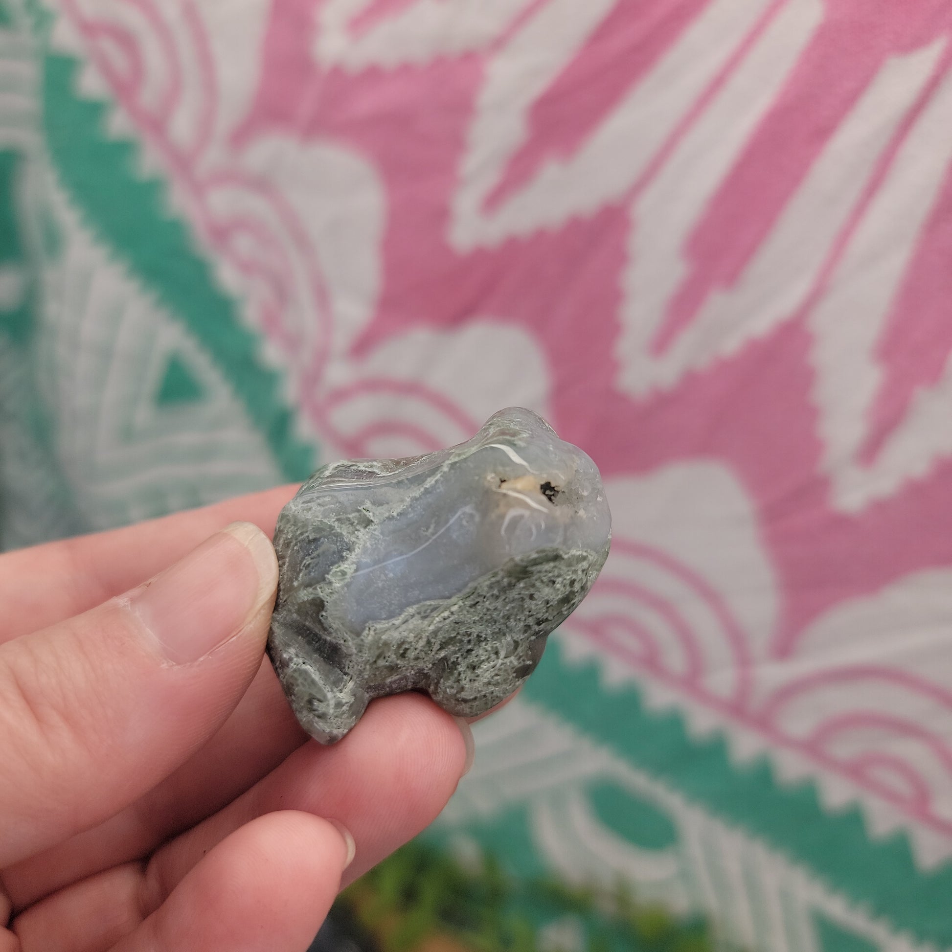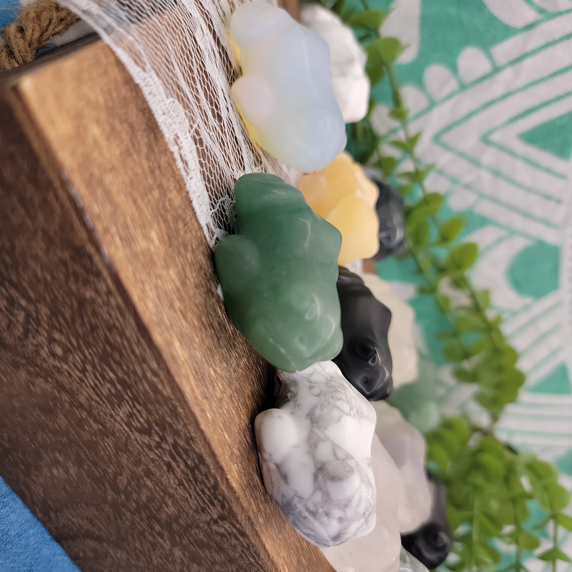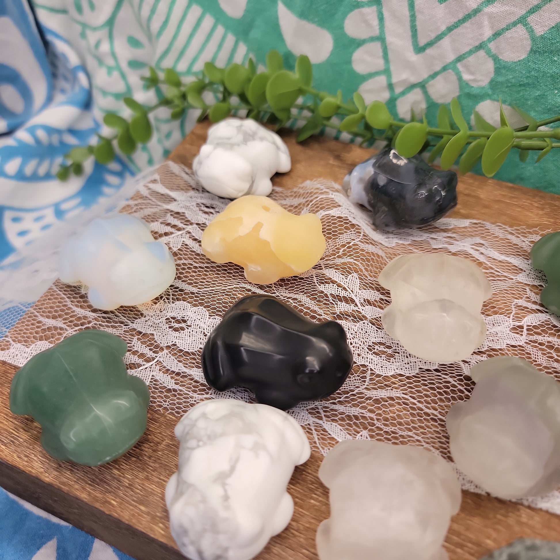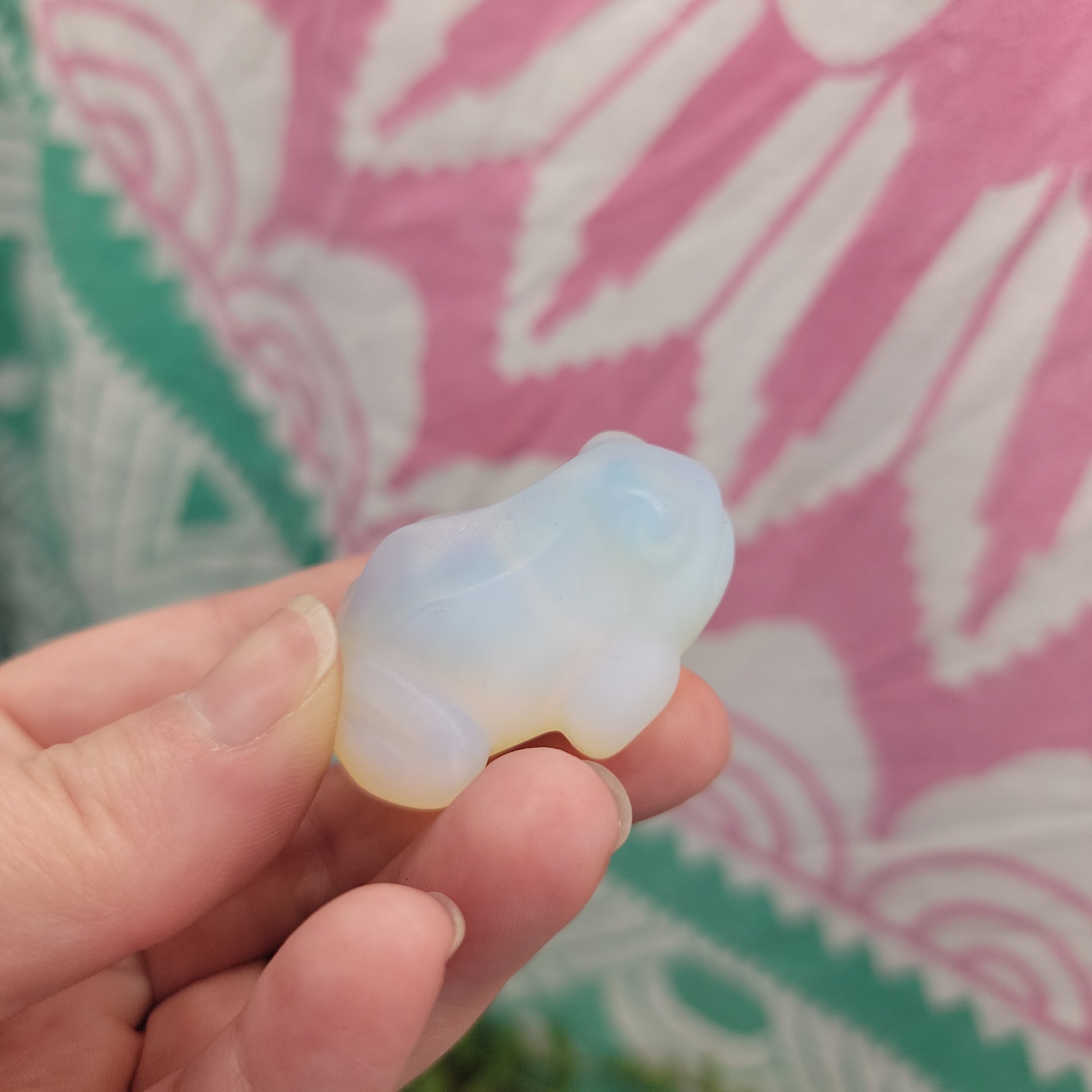 Frogs can be seen as a symbol of potential, transformation, purity, wealth, abundance, and good luck. Frog crystal carvings are available in a variety of shapes and sizes.