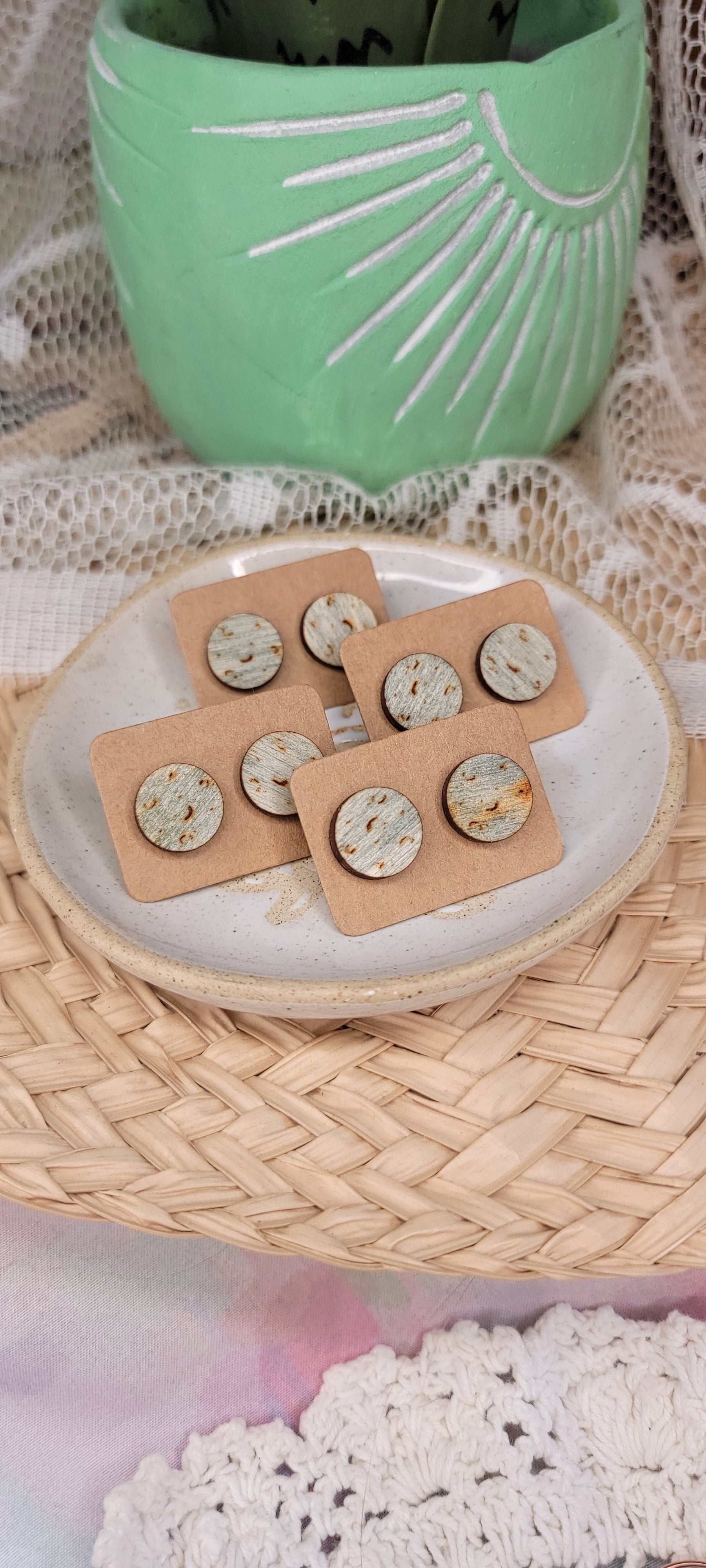 Embrace the beauty of the cosmos with these Hand Painted Full Moon Wood Studs. Each pair is uniquely crafted, offering a serene connection to nature. Wear them to inspire tranquility and remind you of the gentle light guiding your path. Perfect for elevating any outfit with a touch of celestial charm.