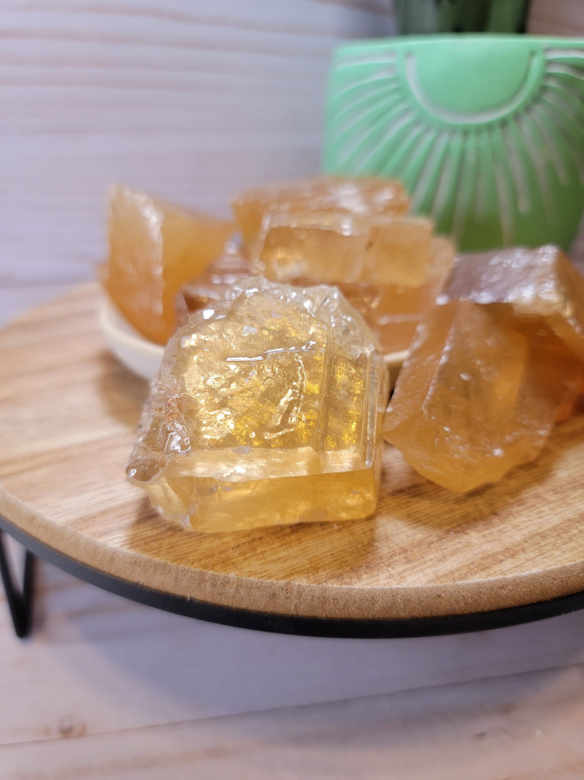 Honey Calcite teaches us understanding and use of power. It may encourage responsibility in leadership and is thought to help with recovering from abusive situations. Honey Calcite is believed to increase feelings of self-worth, confidence, courage, and assists us to overcome obstacles.