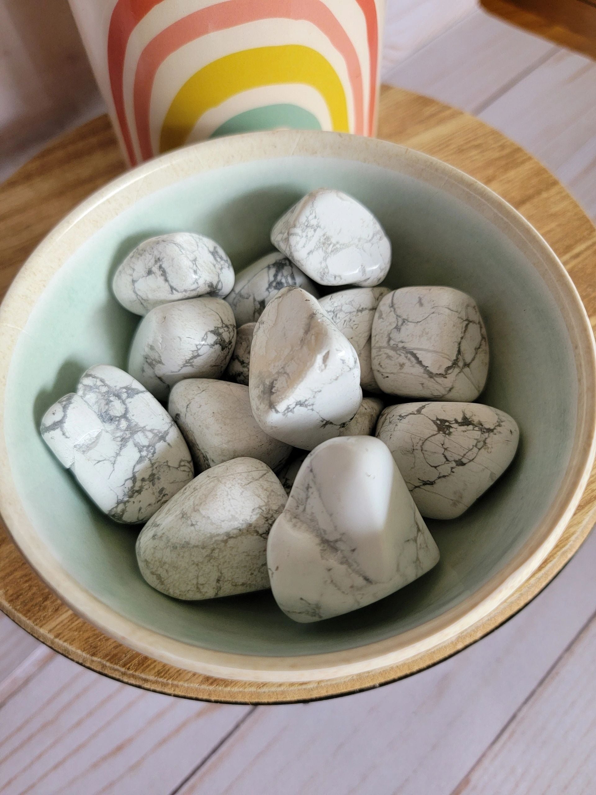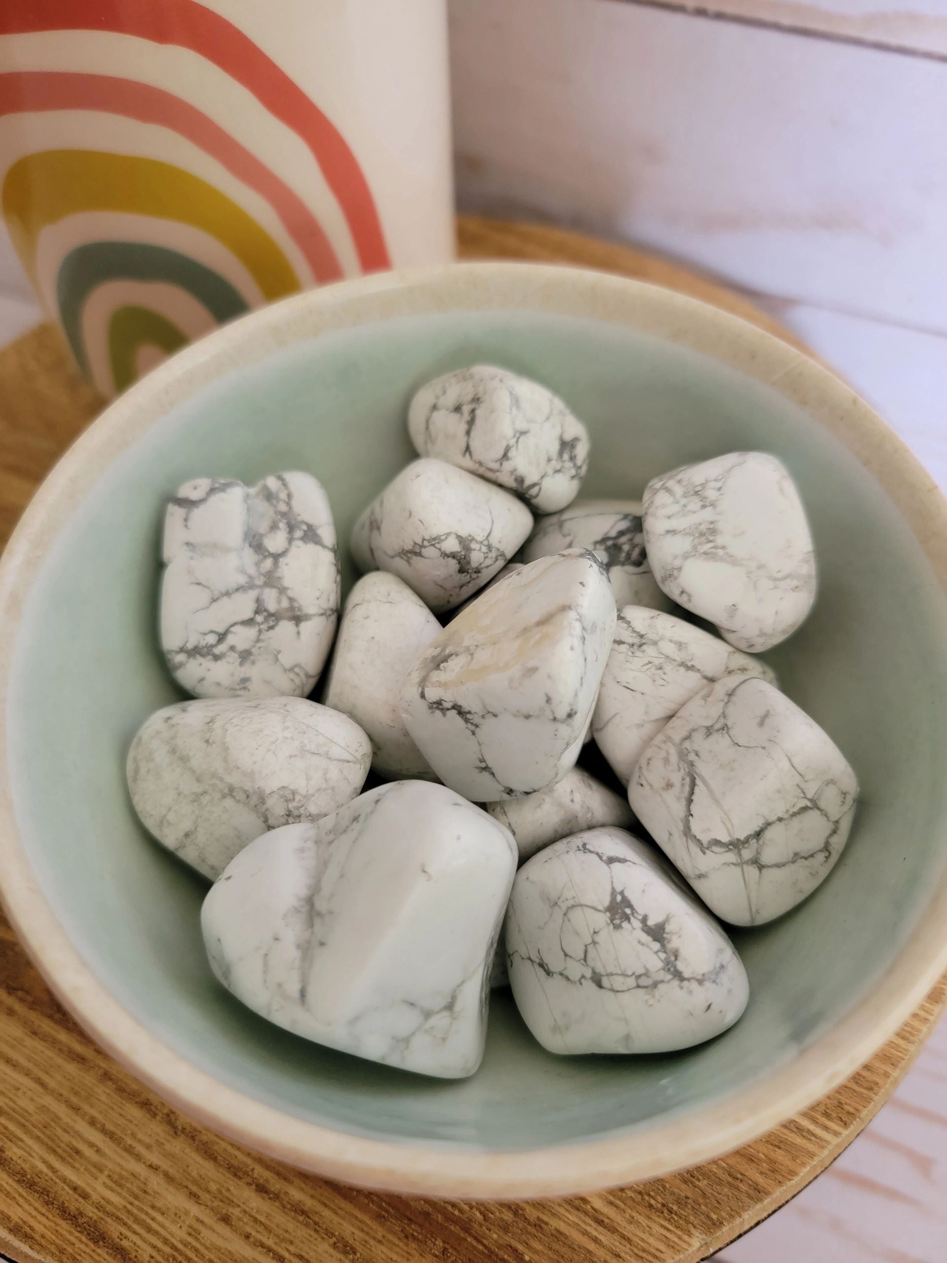 Howlite strengthens memory and stimulates the desire for knowledge. It teaches patience and helps to eliminate rage, pain, and stress. A calming stone, Howlite calms communication, facilitates awareness, and encourages emotional expression. Howlite balances calcium levels in the body.