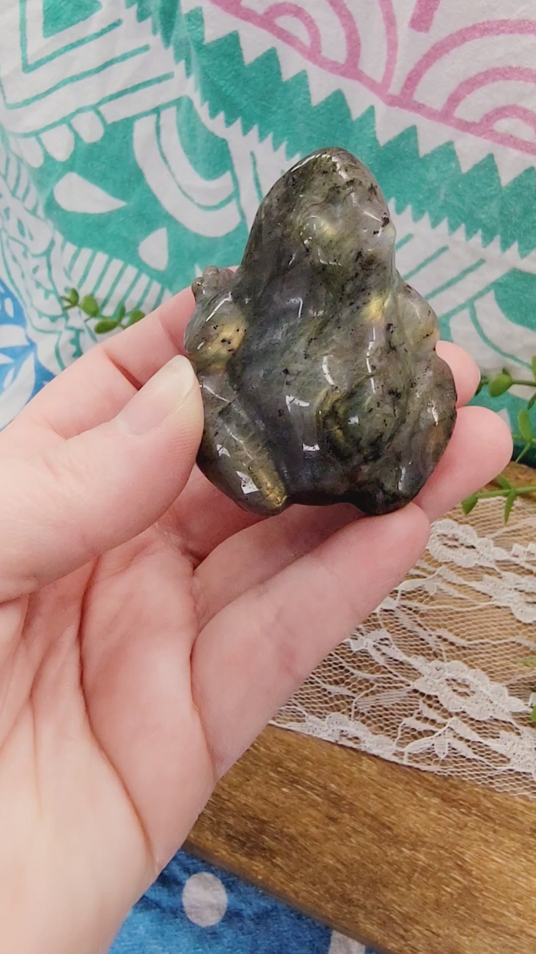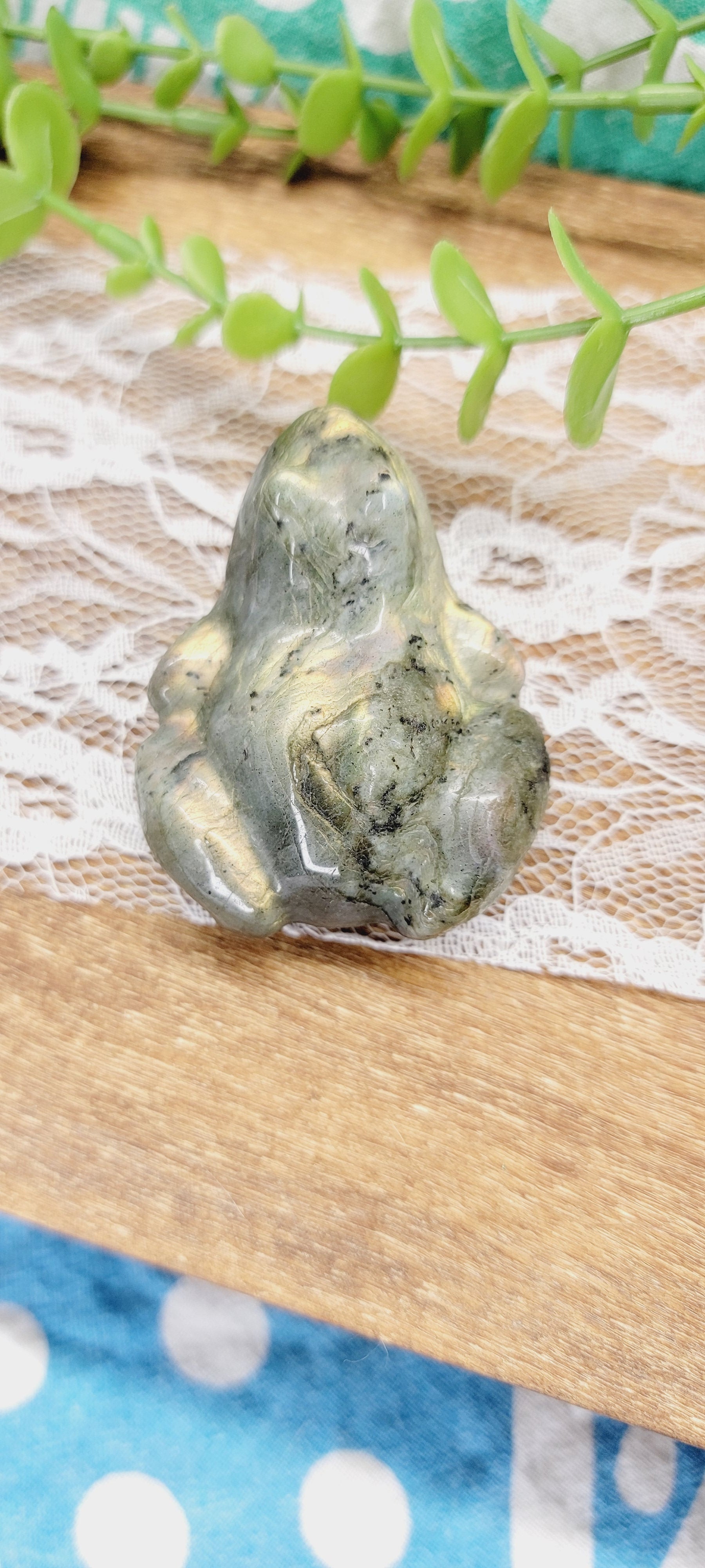 Labradorite frogs can represent: Transformation, Healing, Good fortune, Protection, Light.