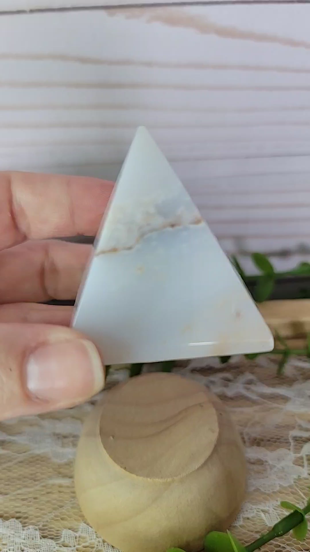 This Medium Chalcedony Pyramid is expertly crafted from beautiful semi-opaque chalcedony, offering an elegantly carved center piece for any home or garden. Its polished surface complements the pyramid's eye-catching symmetrical shape, making it a timeless way to add style to any setting.