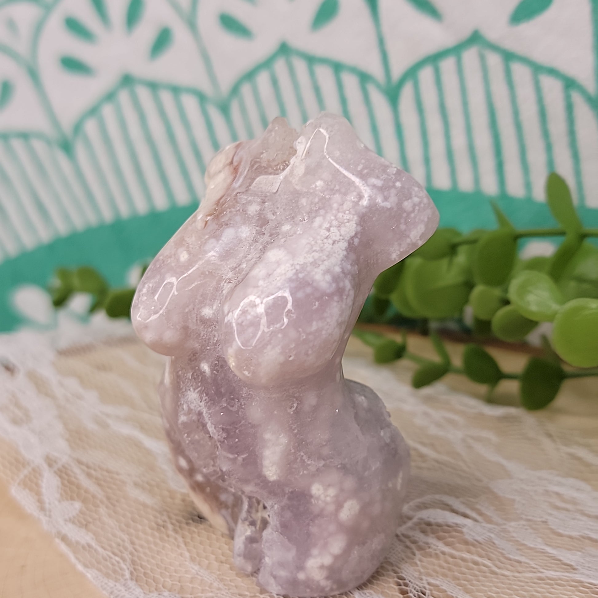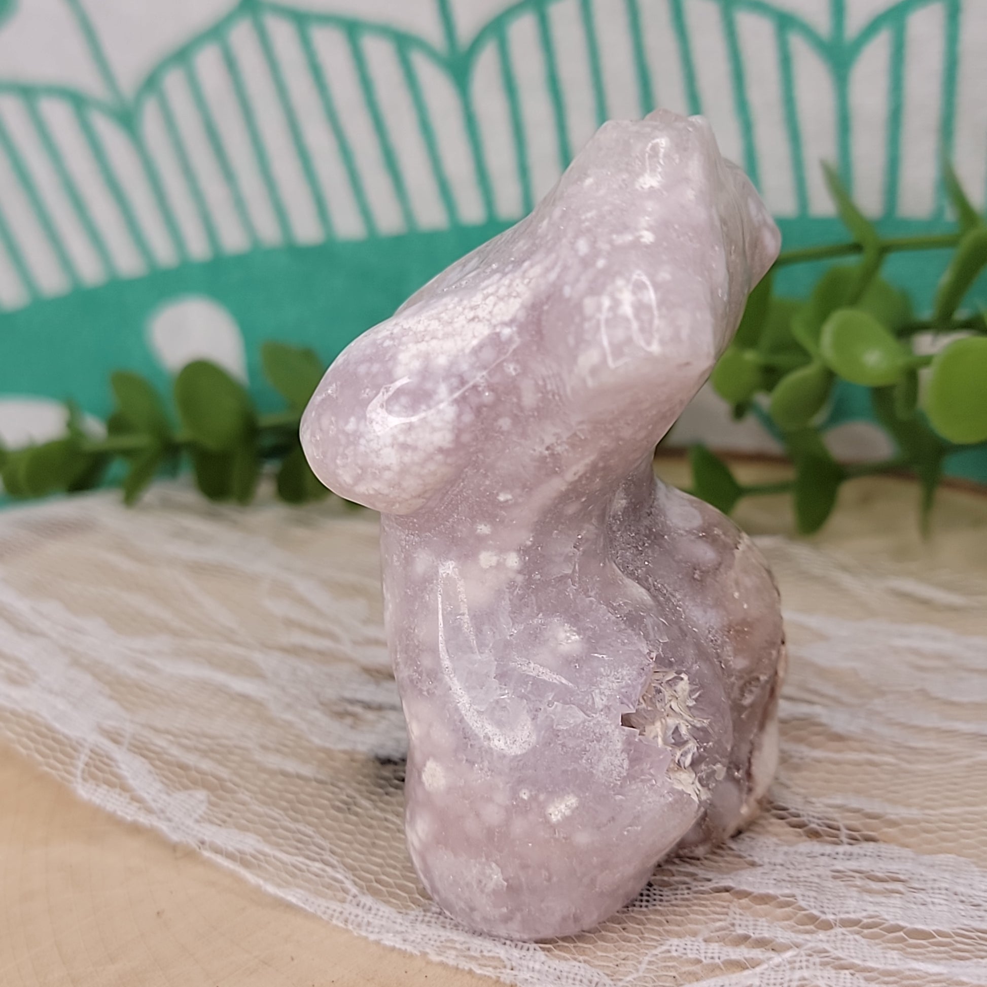 Introducing Pink Amethyst Goddess - a symbol of femininity. This stunning goddess figurine is made of delicate pink amethyst, radiating energy that will bring you peace and harmony. Adorn your space with this goddess and feel your inner goddess awaken.