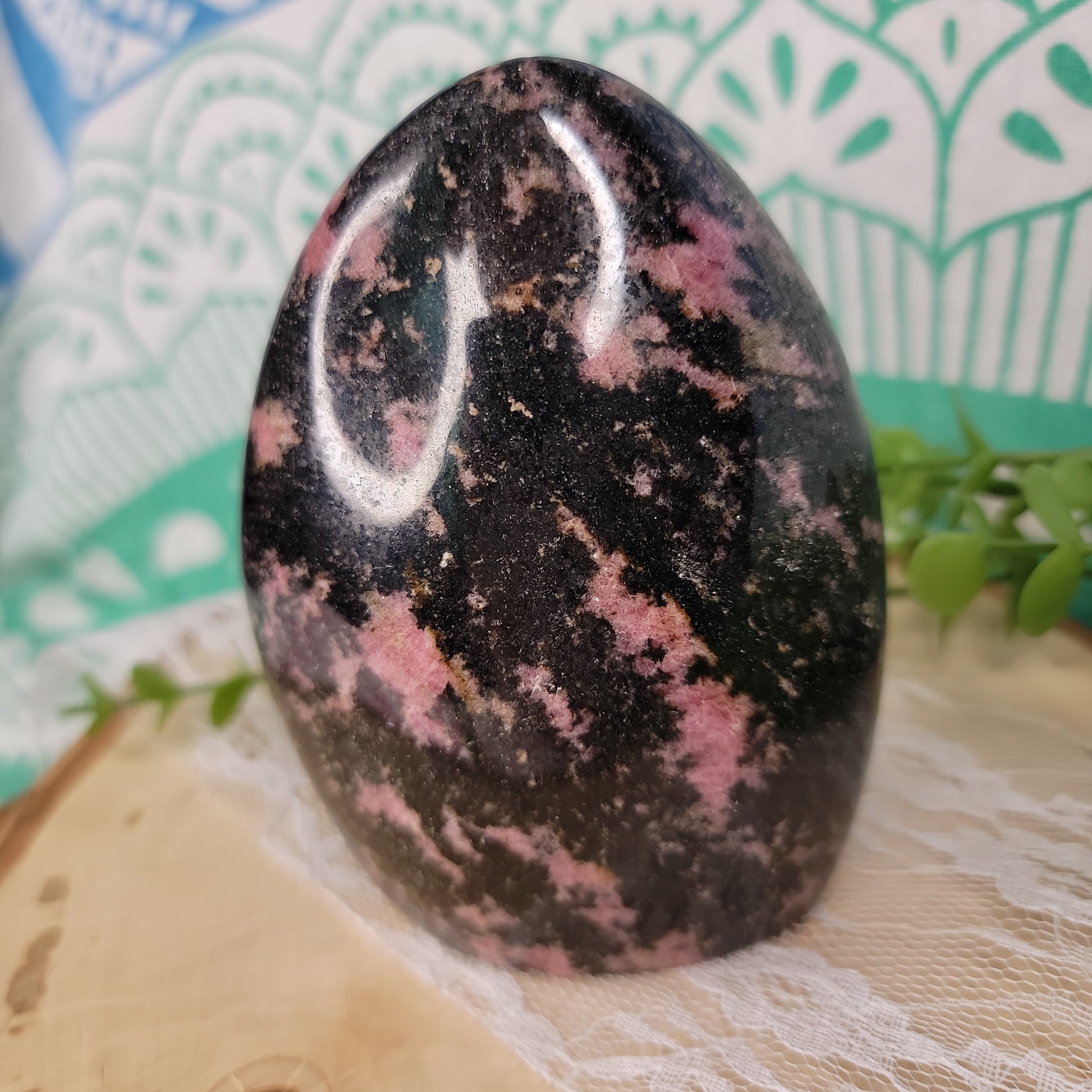 Rhodonite is derived from the Greek word "Rhodon" meaning rose. It symbolizes compassion and love.