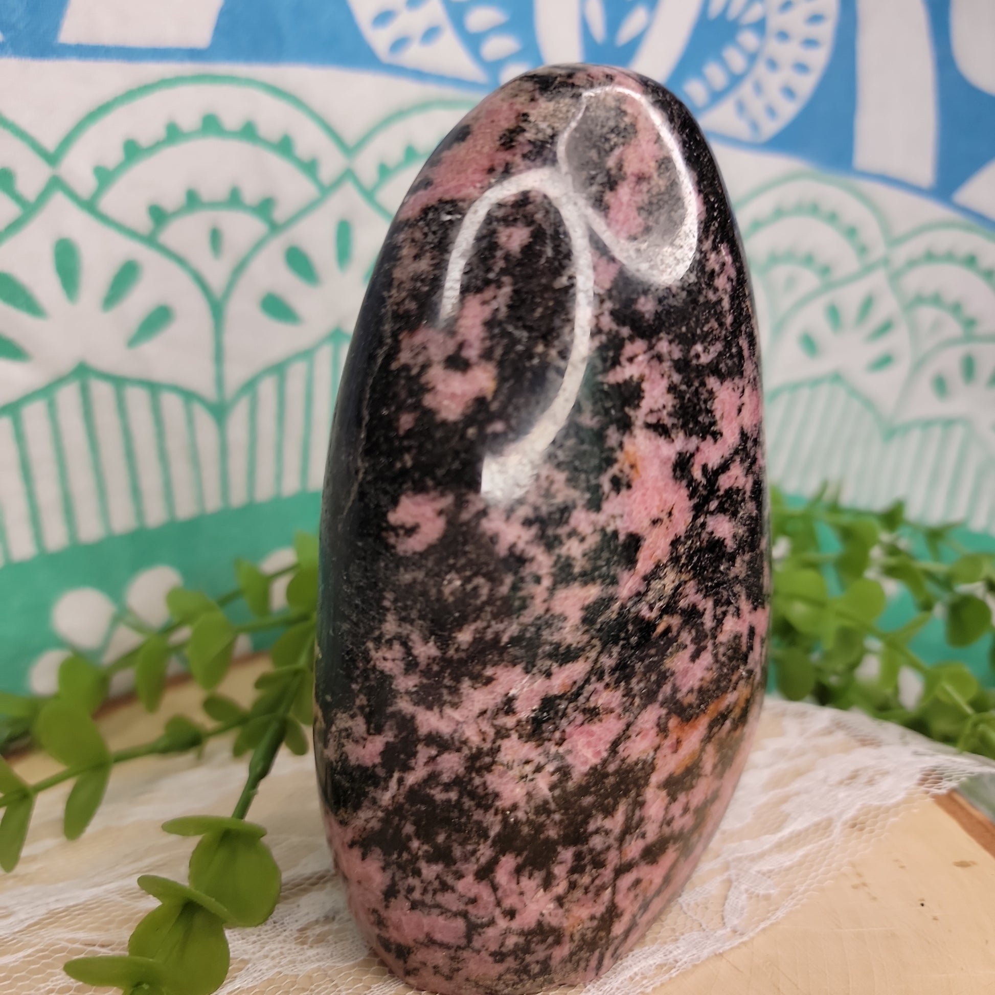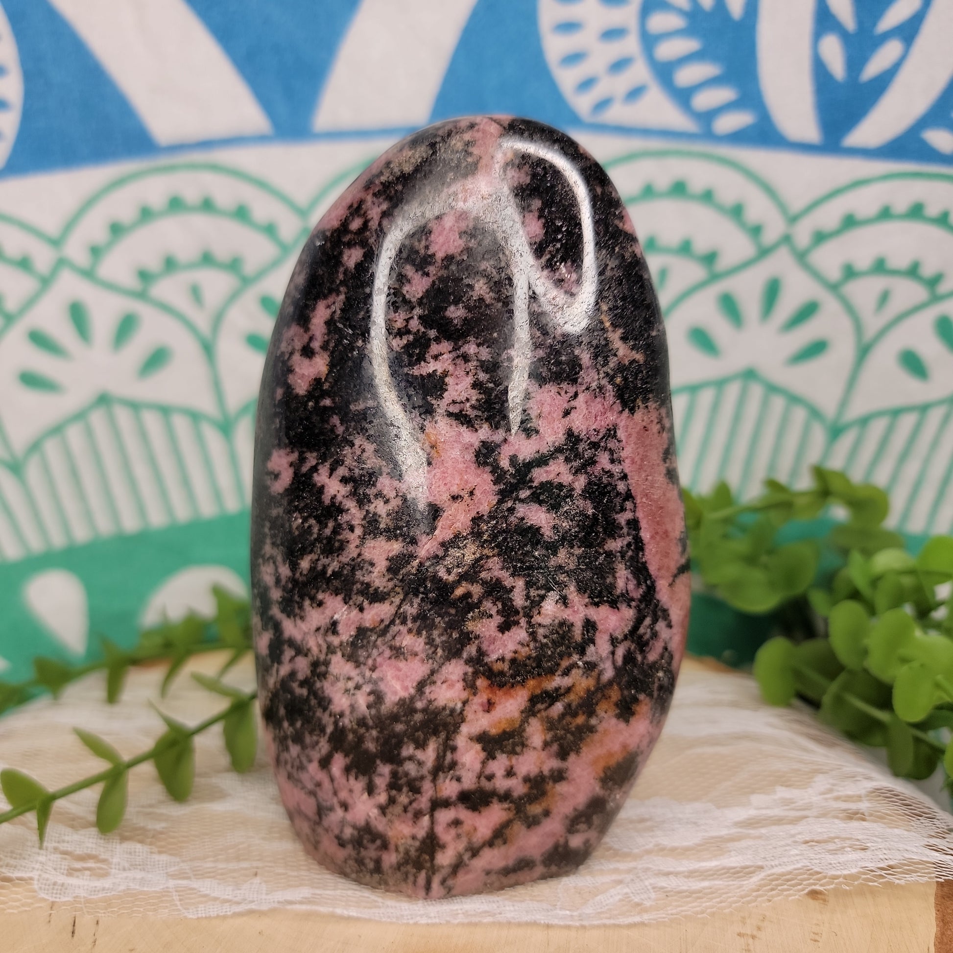 Rhodonite is derived from the Greek word "Rhodon" meaning rose. It symbolizes compassion and love.