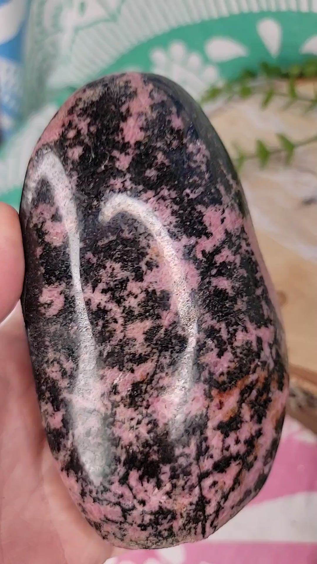 Some also use a rhodonite worry stone to help with anxiety, depression, and loving. To use it, carry the stone in your pocket and place your thumb in the indentation when you begin to feel your mood shift. This can activate different nerves in your hand and fingers to promote calmness, release endorphins, and have an overall euphoric effect.