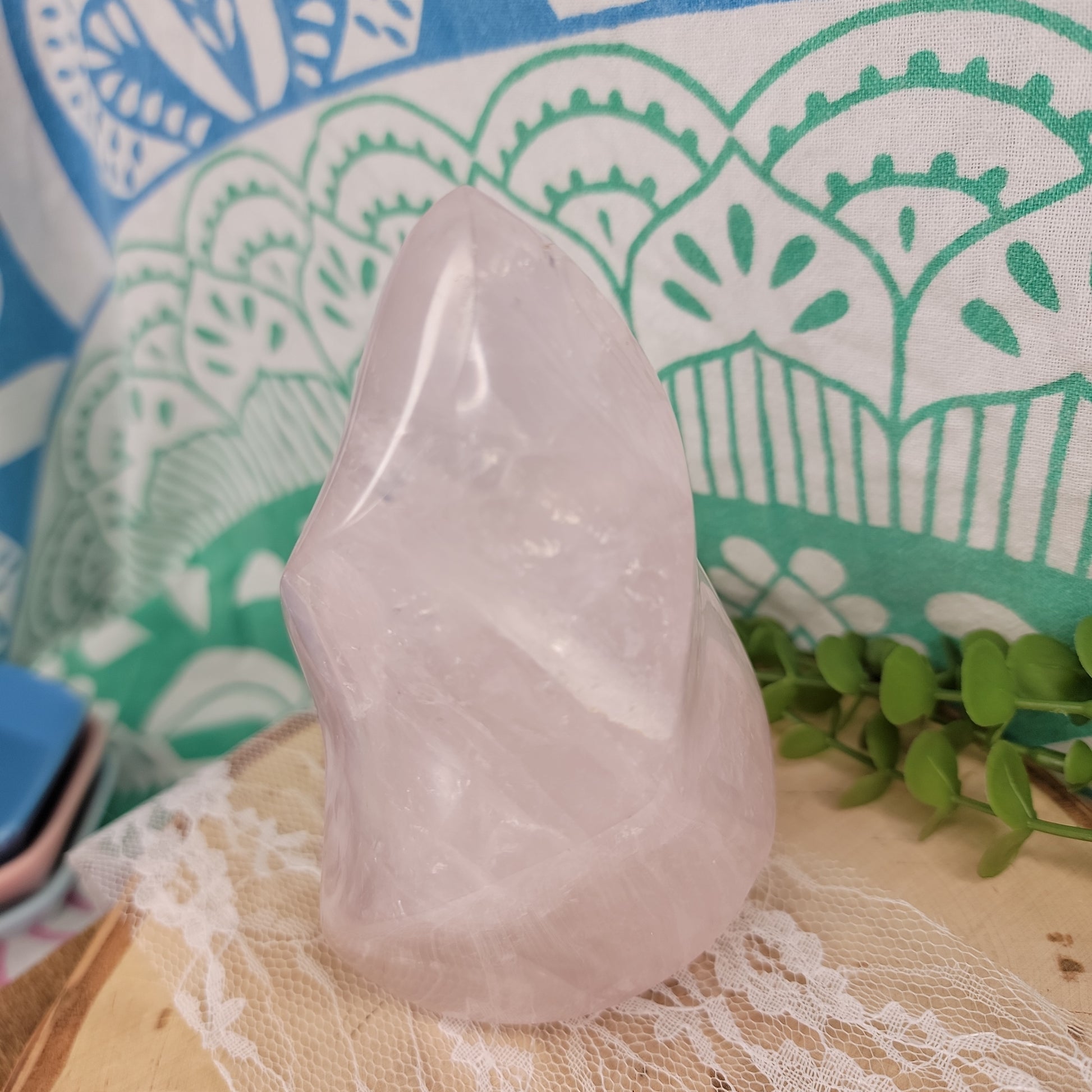 Rose quartz is a pink variety of quartz that is also known as Hyaline Quartz. It is a common mineral that can be found in large quantities in many locations around the world. Rose quartz is translucent, pale pink in color, and has a hexagonal crystal system.