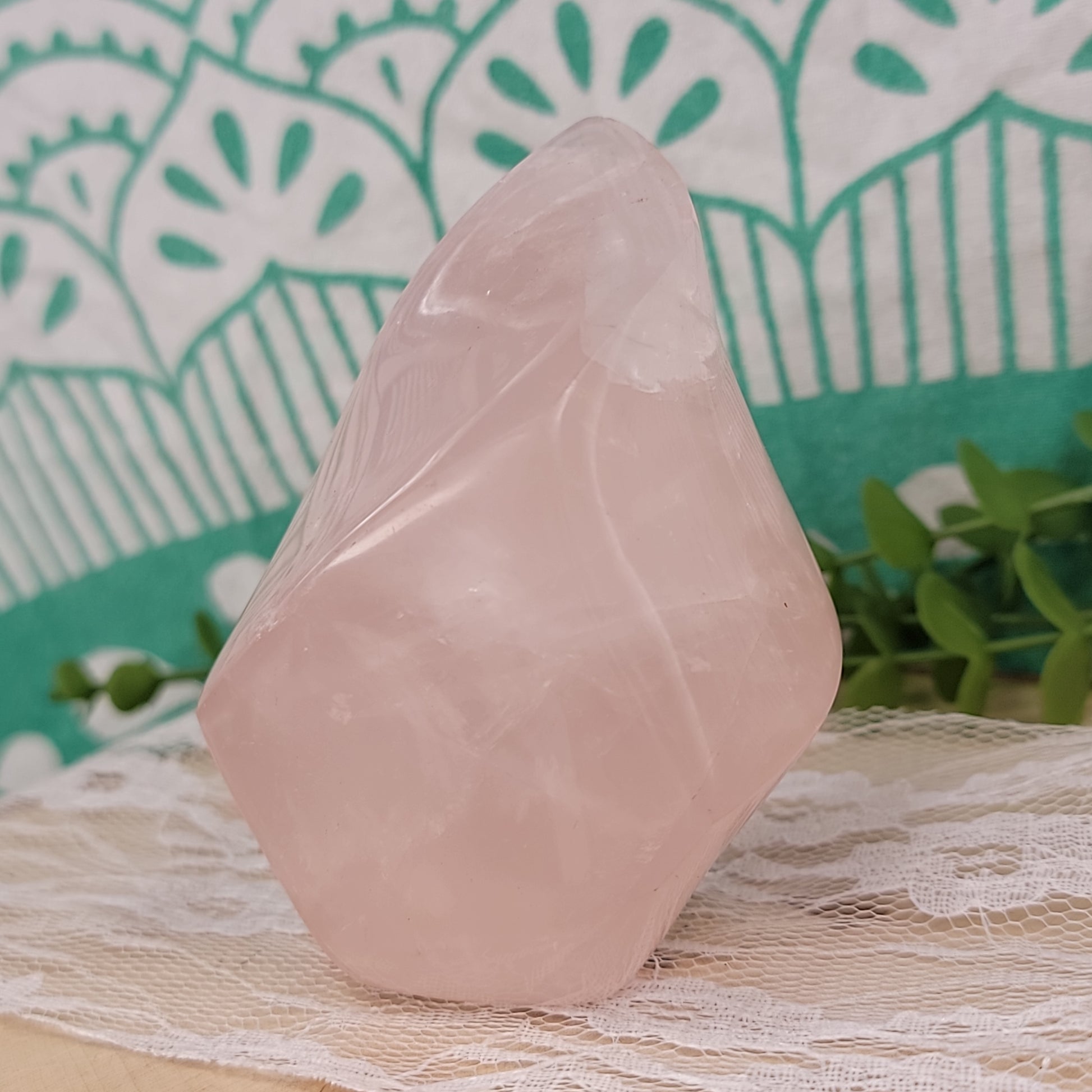 Rose quartz is a pink variety of quartz that is also known as Hyaline Quartz. It is a common mineral that can be found in large quantities in many locations around the world. Rose quartz is translucent, pale pink in color, and has a hexagonal crystal system.