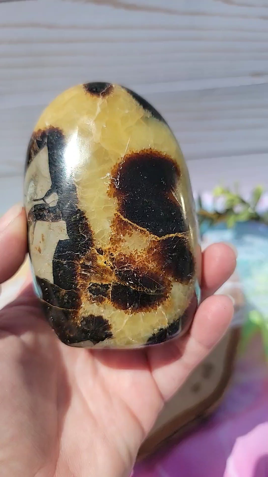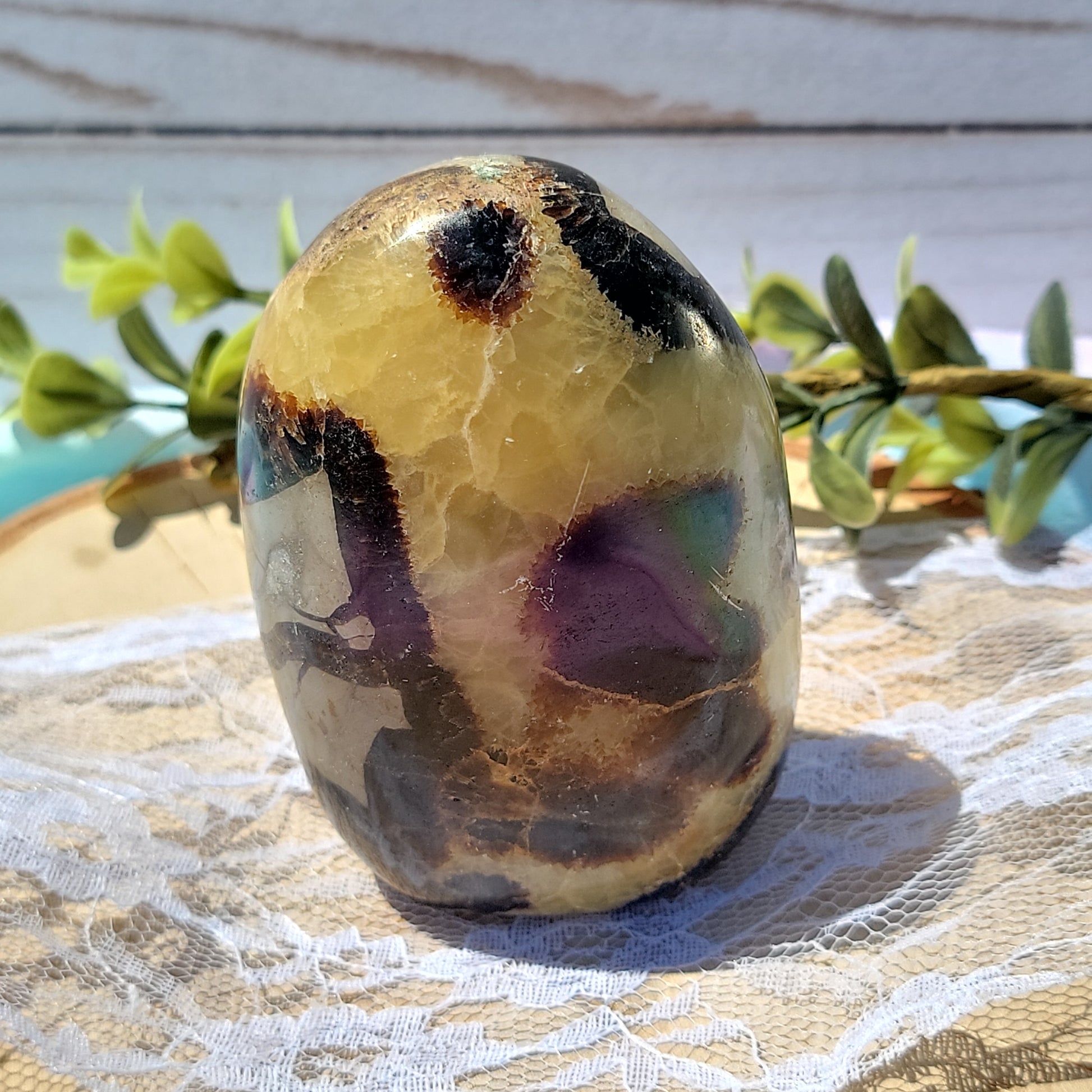 Septarian is said to boost energy. It can be used as an amulet, charm, talisman, decoration, meditative stone, healing stone, aromatherapy, collection, or jewelry accessory.