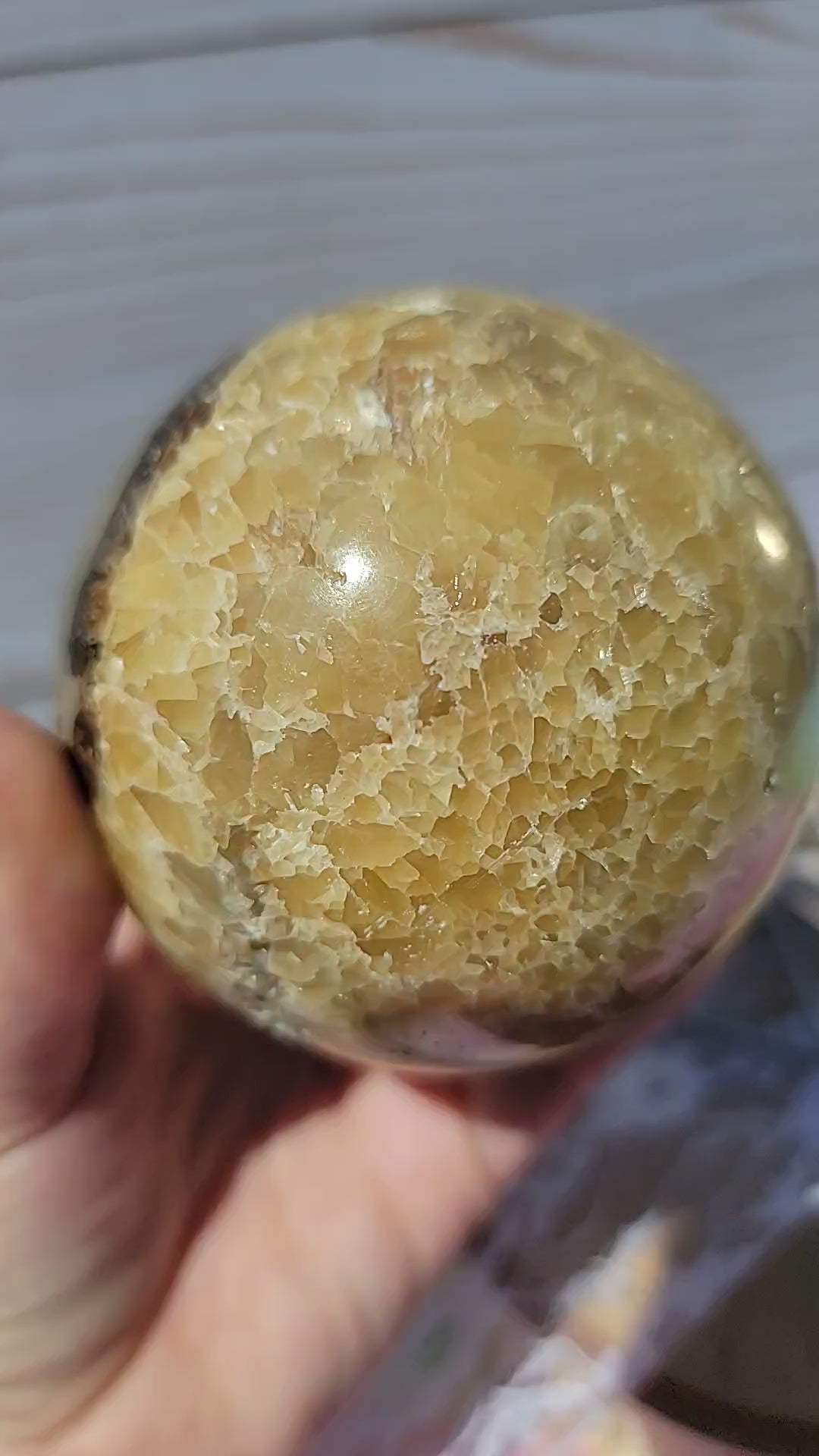 Septarian, also known as Dragonstone, is a yellow-colored rock that is a mixture of calcite, aragonite, and limestone. The name septarian comes from the Latin word septem, which means "seven" because it seems to form in patterns of seven