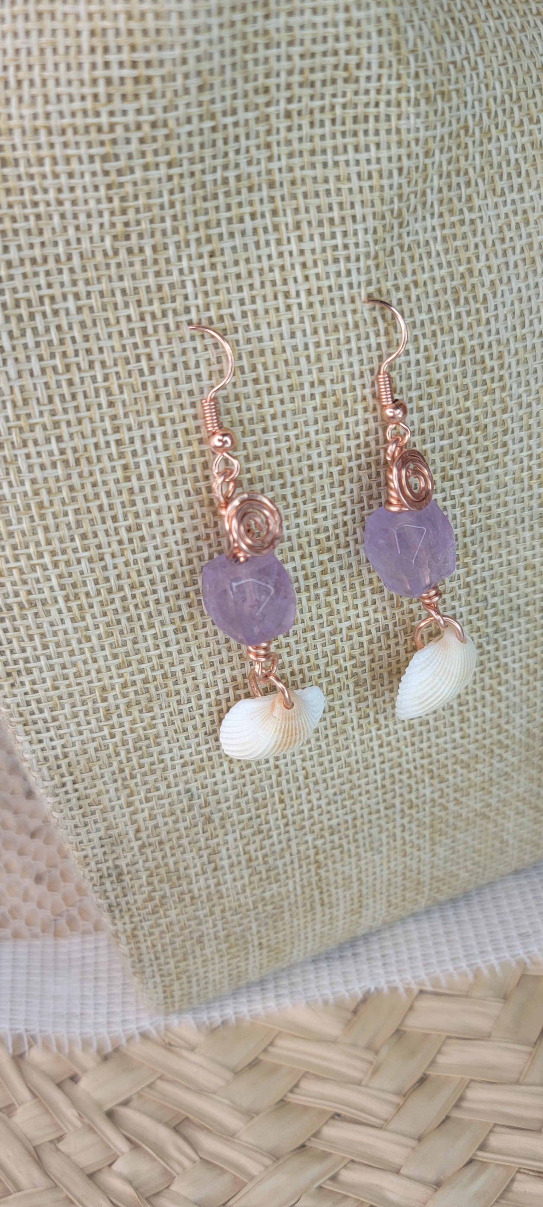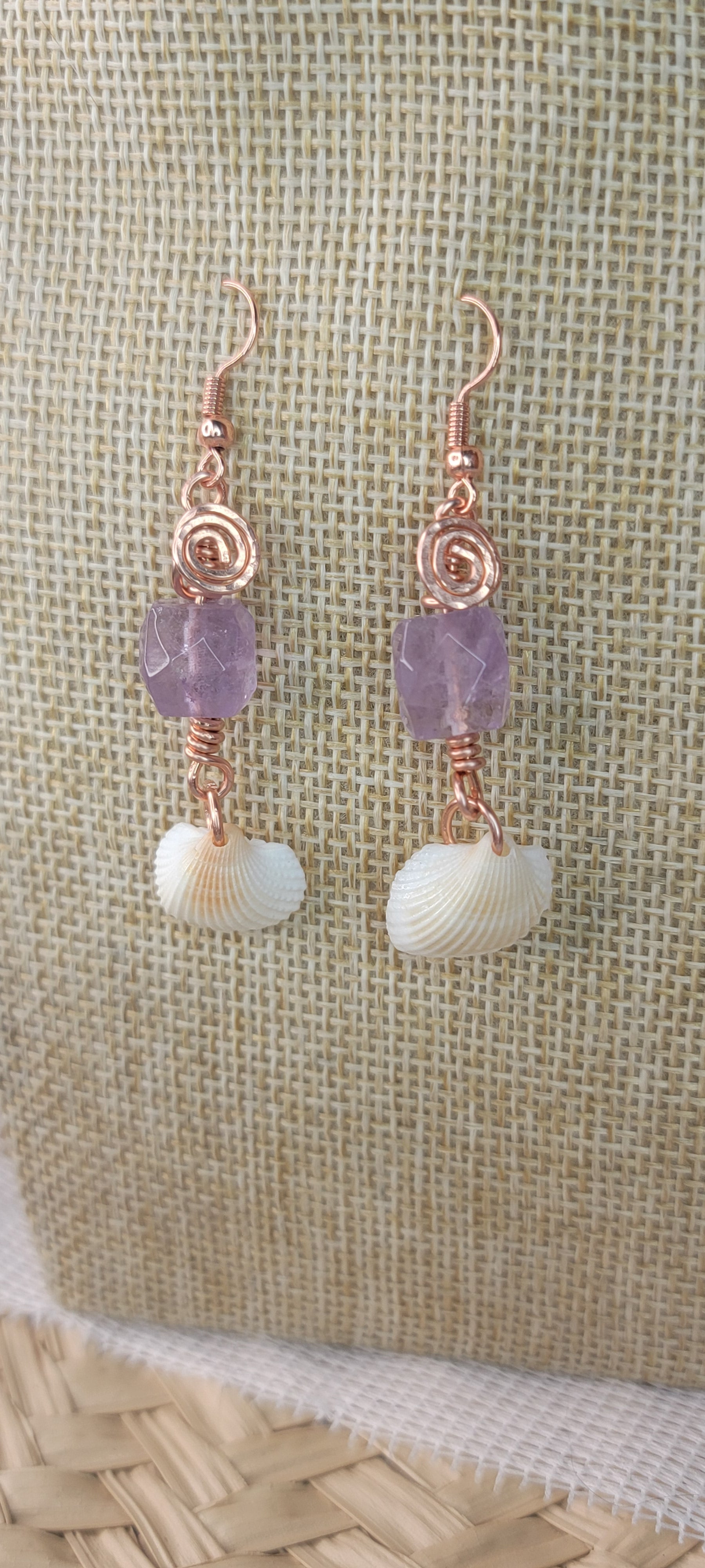 Embrace the tranquil beauty of nature with these wire-wrapped amethyst and seashell earrings. The harmonious blend of calming amethyst and delicate seashells offers a serene accessory that enhances your natural elegance, making each moment feel more connected and grounded. Perfect for expressing your unique style peacefully.